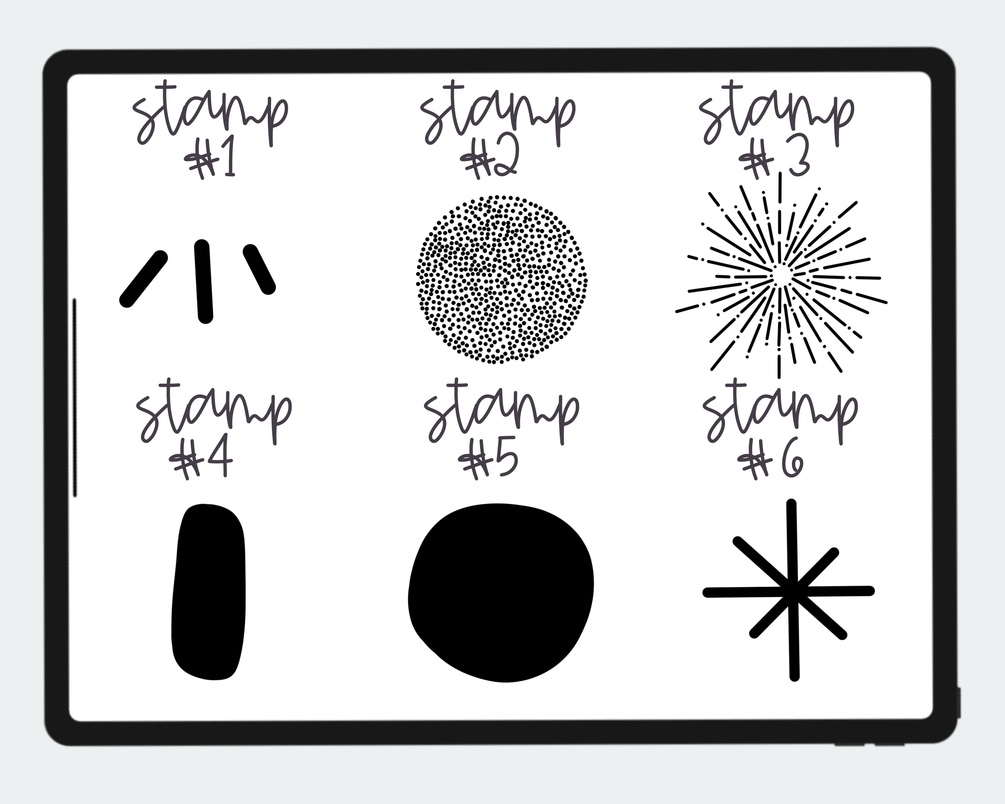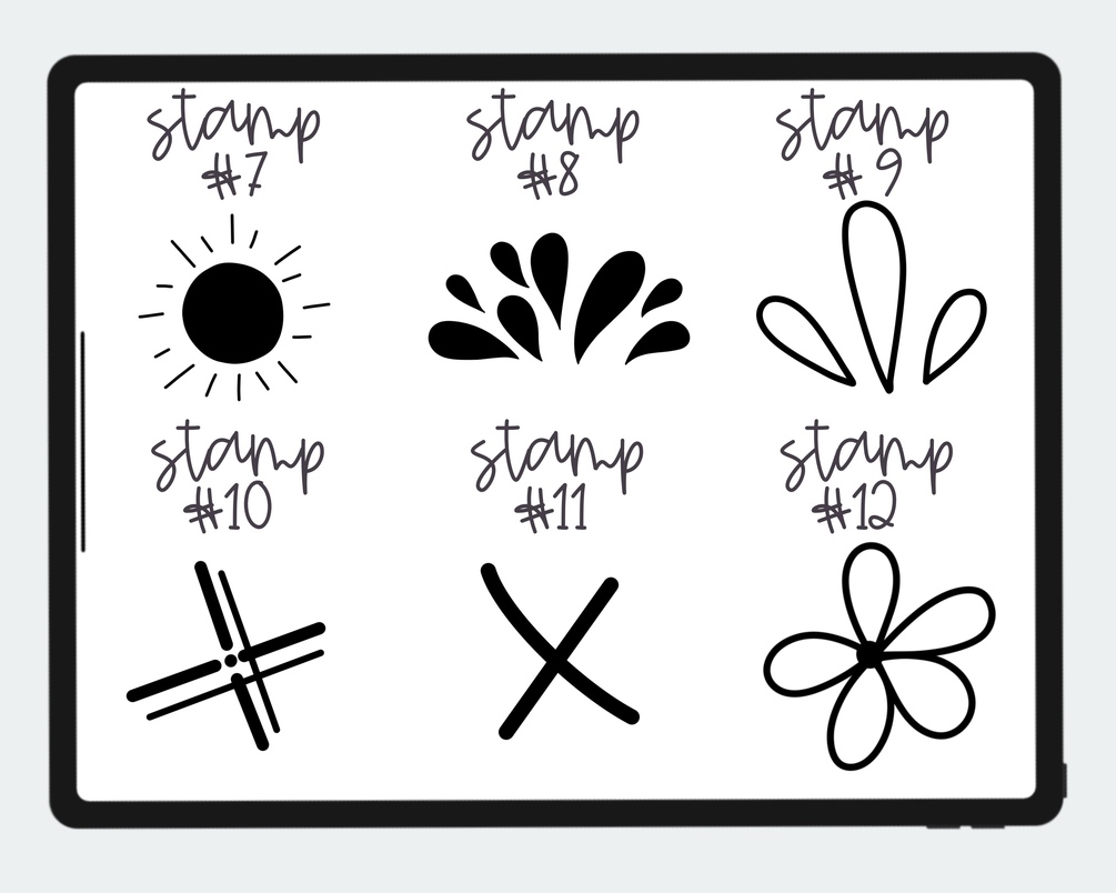 12 hand-designed procreate stamp brushes made easy for you to integrate into your own artwork! You can use the stamp brushes as they are or color drop a color in the center of each line for an extra pop. This is my favorite way to create art!